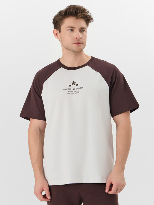 Мужская футболка выполнена из натуральной хлопковой кулирки, что обеспечивает легкость, воздухопроницаемость и комфорт в течение всего дня. Модель прямого кроя подходит для любого типа фигуры, не сковывает движений и сохраняет аккуратный внешний вид. Круглая горловина обработана бейкой из рибаны, благодаря чему хорошо держит форму и не деформируется при носке. Рукав-реглан придает изделию спортивный характер и обеспечивает удобную посадку по плечам. Нижние срезы футболки и рукавов аккуратно обработаны швом вподгибку, что повышает износостойкость и делает изделие более опрятным. Эта футболка станет отличным выбором для повседневного гардероба, сочетая в себе практичность, стиль и комфорт.