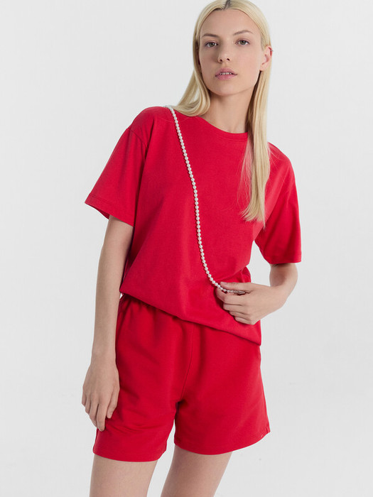 Хлопковая футболка свободного силуэта из трикотажного полотна кулирка. Горловина круглой формы. Свободу движений гарантируют спущенная линия плеча и углубленная пройма. Рукава широкие, чуть выше локтя. Стильная модель!