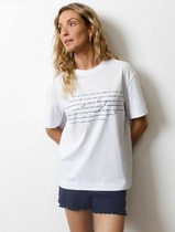 Нижние срезы футболки и рукавов обработаны швом вподгибку.