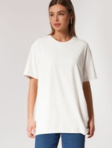 Футболка прямого силуэта из трикотажного полотна кулирка. Горловина круглой формы, широкая обтачка из рибаны.