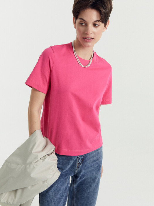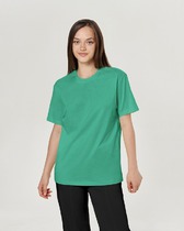 Футболка прямого силуэта из трикотажного полотна кулирка. Горловина круглой формы, широкая обтачка из рибаны.