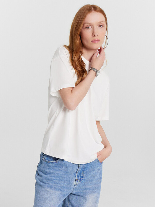 Эта женская футболка станет незаменимой базовой моделью в вашем гардеробе. Прямой и свободный крой обеспечивает комфорт и свободу движений. Круглая форма горловины и короткие рукава делают её универсальной и подходящей для любого случая. Изделие выполнено из хлопковой кулирки, гарантирующей мягкость и приятное ощущение на коже. Эта футболка идеально сочетается с различными элементами гардероба, создавая стильные и удобные образы на каждый день.