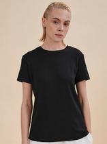 Футболка силуэта оверсайз из трикотажного полотна кулирка. Горловина круглой формы, обтачка горловины из рибаны. Шов горловины спинки закрыт бейкой из основного полотна.