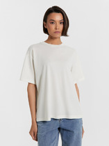 Нижние срезы футболки и рукавов обработаны швом вподгибку.
