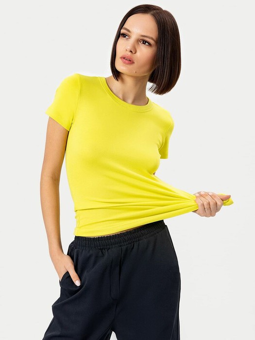 Спортивная футболка прилегающего силуэта из рибаны. В составе полотна – натуральный хлопок и немного эластана. Горловина круглая, рукава короткие. Отличный вариант футболки для спорта, домашних дел и прогулок!