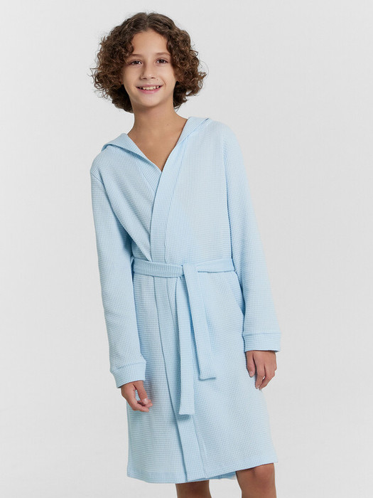 Махровый халат для мальчиков. Силуэт прямой, длина ниже коленей. Халат с запахом, со съемным поясом. Имеется уютный капюшон и вместительные боковые карманы. Комфортный халат!