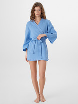 Халат оснащен удобным капюшоном, который дополняет образ и обеспечивает дополнительный комфорт. Пояс с петлями позволяет отрегулировать посадку по фигуре, а накладные карманы с закругленным низом добавляют практичности. Длинные рукава и аккуратная отделка бортов и капюшона делают халат элегантным и завершенным.