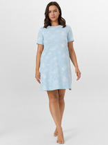 Женский халат с узором создает атмосферу уюта и волшебства. Модель прямого силуэта длиной выше колена удобна для повседневной носки. Спинка без швов и классические длинные рукава обеспечивают комфорт и свободу движений.