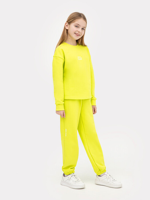 Комплект для девочек состоит из джемпера и брюк. Джемпер свободного силуэта. Рукава длинные, втачные. Линия плеча спущена. Плечевой шов смещен вперед. Горловина круглой формы c окантовкой из трикотажного полотна рибаны. Низ рукавов и изделия обработаны трикотажным полотном рибана. Брюки свободного силуэта. Пояс цельнокроеный с внутренней эластичной тесьмой.