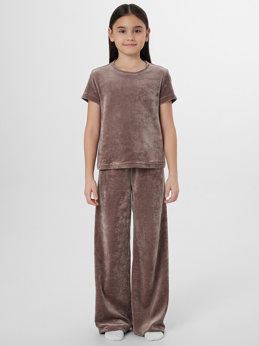 Брюки свободного силуэта. Пояс цельнокроеный внутри с резиной 40RV. Низ брюк в подгибку.