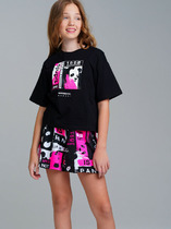 Комплект для девочек состоит из футболки и шорт.