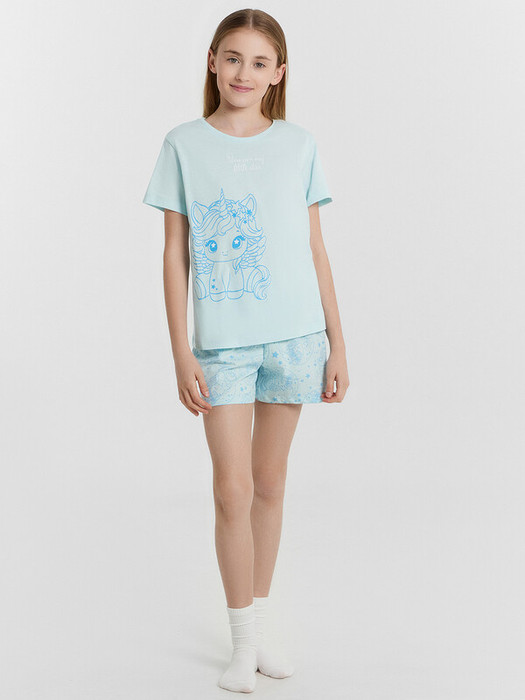 Комплект для девочки, состоит из футболки с короткими рукавами и шорт из натурального хлопка. Подходит для сна и отдыха. Материал очень приятный к телу, хорошо пропускает воздух, что позволяет чувствовать себя комфортно даже в жаркую погоду. Идеальный выбор детской одежды для дома. Стильно, красиво, комфортно. Футболка декорирована интересным принтом, шортики однотонные. Широкий размерный ряд, базовые и яркие расцветки, модели с принтами, рисунками и печатями. Купите детскую пижаму для девочки от Mark Formelle, порадуйте ребенка красивым и стильным подарком!