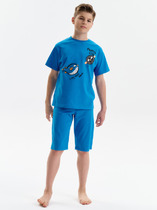 Эта детская пижама — сочетание комфорта, мягкости и практичного дизайна, идеально подходящее для сна и отдыха. Футболка свободного силуэта обеспечивает легкость и комфорт при движении, позволяя ребенку чувствовать себя непринужденно. Горловина круглой формы оформлена обтачкой из рибаны, что добавляет прочности и делает посадку комфортной. Втачные свободные рукава со слегка спущенной линией плеча создают расслабленный силуэт, а обработка низа рукавов и футболки в подгибку придает аккуратный вид. Шорты свободного силуэта дарят удобство и свободу движений, обеспечивая комфорт в течение всей ночи. Эластичный пояс гарантирует надежную посадку, а обработка низа шорт вподгибку делает изделие аккуратным и долговечным. Выполненная из натурального хлопка, пижама обладает мягкостью, воздухопроницаемостью и приятными тактильными свойствами, даря уют и комфорт ребенку. Отличный выбор для стильного и удобного отдыха!