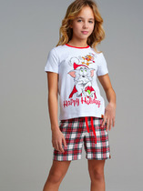 Пижама для мальчиков. Выполнена из хлопкового трикотажа кулирного переплетения. Комплект включает футболку и шорты. Футболка свободная, с круглой горловиной и короткими рукавами. Шорты длиной до колен, с эластичной тесьмой в поясе. Отличный комплект для сна и отдыха!