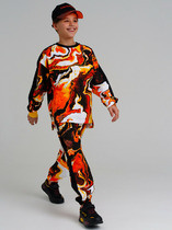 Худи свободного силуэта для мальчиков с капюшоном. Горловина округлой формы. Капюшон со средним швом, на подкладке из основного полотна. Плечо спущено, рукав втачной длинный. По низу рукава отрезная манжета из рибаны. Пояс отрезной из рибаны.Брюки для мальчиков. Без бокового шва. Карманы в вытачке. Пояс отрезной с внутренней эластичной тесьмой. Пояс прострочен двумя отделочными строчками. Внутри в пояс втянут шнур. Низ брюк обработан манжетами из рибаны.