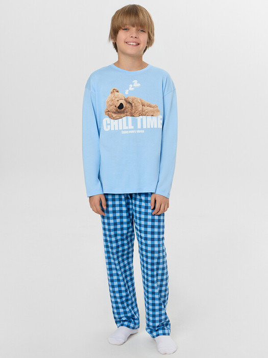 Лонгслив с круглой горловиной и длинными рукавами со спущенным плечом обеспечивает удобство и свободу движений. Брюки прямого кроя на мягком поясе с эластичной резинкой не давят на талию и надежно фиксируются. Надпись и рисунок с добрым юмором добавят настроения в повседневные занятия.