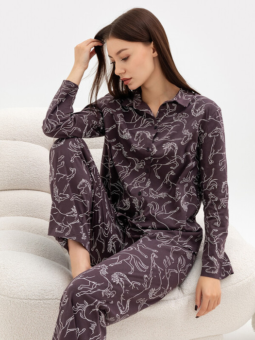 Совместные покупки Пермь Женская одежда Пижамы, халаты — Mark Formelle КОМПЛЕКТ ЖЕНСКИЙ (БЛУЗКА, БРЮКИ) 592462 592462 кони на цвете кора
