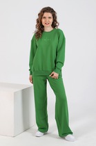 Спортивный комплект из футера без подчеса. В составе полотна – натуральный хлопок, немного полиэстера для прочности и эластана, который дарит свободу движений при нагрузках. Джемпер прямого силуэта, с длинными рукавами на манжетах, эластичным поясом на нижнем срезе и лампасами. Брюки зауженного к низу силуэта, на манжетаха, с лампасами и боковыми карманами. Широкий пояс из рибаны со шнурком-завязкой дарит особый комфорт во время занятий спортом и отдыха.