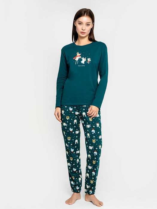 Совместные покупки Пермь Женская одежда Домашняя одежда — Mark Formelle КОМПЛЕКТ ЖЕНСКИЙ (ДЖЕМПЕР, БРЮКИ) 592510 592510 хвоя +зверята на х