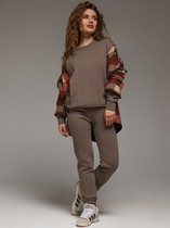 Джемпер женский свободного силуэта. Горловина круглой формы с обтачкой из основного полотна. Рукава реглан, с отрезной манжетой по низу. В боковых швах обработаны разрезы. По низу джемпера отрезной пояс.