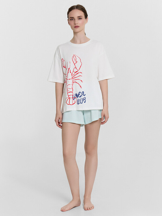 Совместные покупки Пермь Женская одежда Пижамы, халаты — Mark Formelle КОМПЛЕКТ ЖЕНСКИЙ (ДЖЕМПЕР, ШОРТЫ) 592591 592591 белый +бирюзово -г