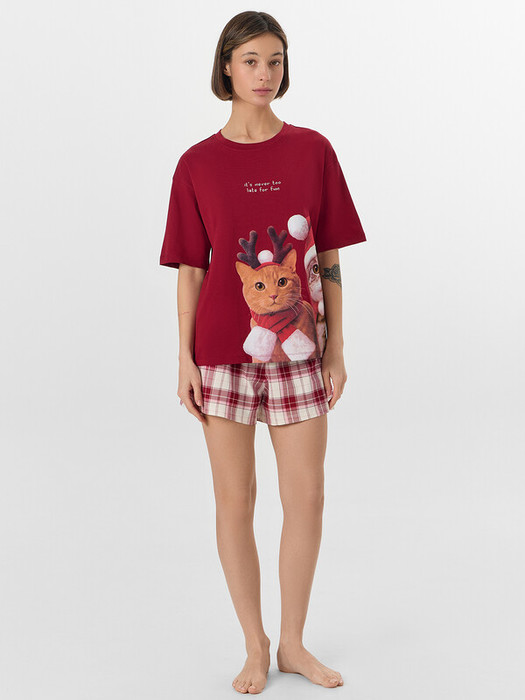 Футболка с круглой горловиной и слегка спущенными плечами не сковывает движений во время сна. Короткие шорты на мягкой резинке обеспечивают удобную посадку без давления. Надпись передает жизнерадостный настрой и создает позитивную атмосферу, идеально соответствующую праздничному настроению.