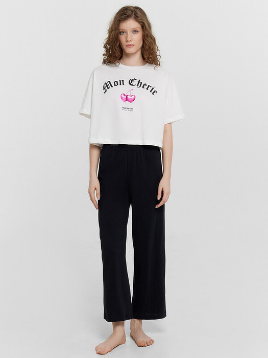 Очаровательный домашний комплект из трикотажной кулирки. Футболка прямого силуэта длиной до талии и просторные бриджи с эластичной тесьмой в поясе гарантируют свободу движений и неповторимый комфорт. Идеально для сна и домашних дел.