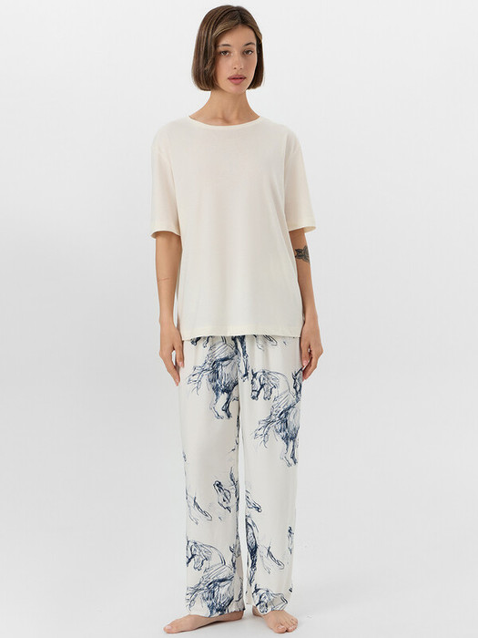 Совместные покупки Пермь Женская одежда Пижамы, халаты — Mark Formelle КОМПЛЕКТ ЖЕНСКИЙ (ФУТБОЛКА, БРИДЖИ) 592541 592541 молочный +лошади