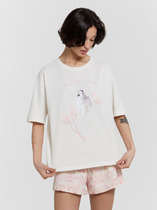 Комплект женский состоит из футболки и шорт. Футболка свободного силуэта. Горловина круглой формы, обтачка из основного полотна. Рукава короткий, реглан. Нижний срез футболки и рукавов обработан швом вподгибку.