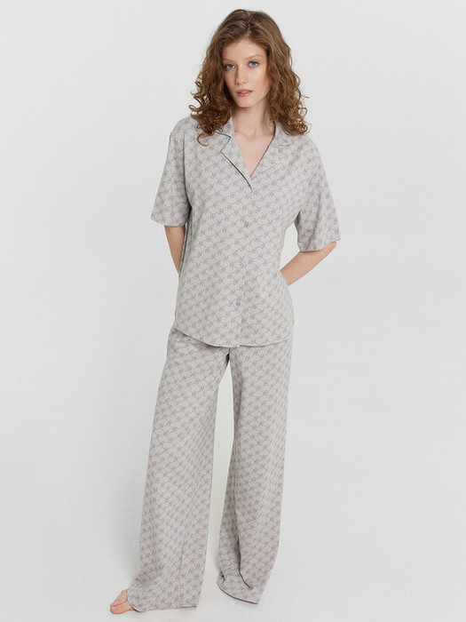 Комплект домашний женский серый с принтом в виде монограммы "MF"