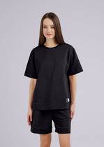 Удобный спортивный комплект из легкой трикотажной кулирки. Включает топ и шорты-велосипедки. Топ облегающего силуэта, с круглым вырезом горловины и «американской» проймой. Нижняя часть топа окантована жаккардовой эластичной тесьмой. Велосипедки облегающего силуэта, длиной до колен, с эластичной жаккардовой тесьмой в поясе. Стильно и функционально!