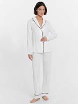 Нежная женская пижама выглядит очень элегантно и комфортно. Жакет свободного силуэта с короткими рукавами и застежкой на пуговицах создаёт легкий и расслабленный образ. А легкие брюки с эластичным поясом обеспечивают дополнительный комфорт и свободу движений. Изделие выполнено из нежнейшей и приятной к телу вискозы, которая дарит ощущение мягкости и комфорта на протяжении всего дня или ночи. Этот комплект идеален для тех, кто ценит качество и утонченность в домашней одежде.