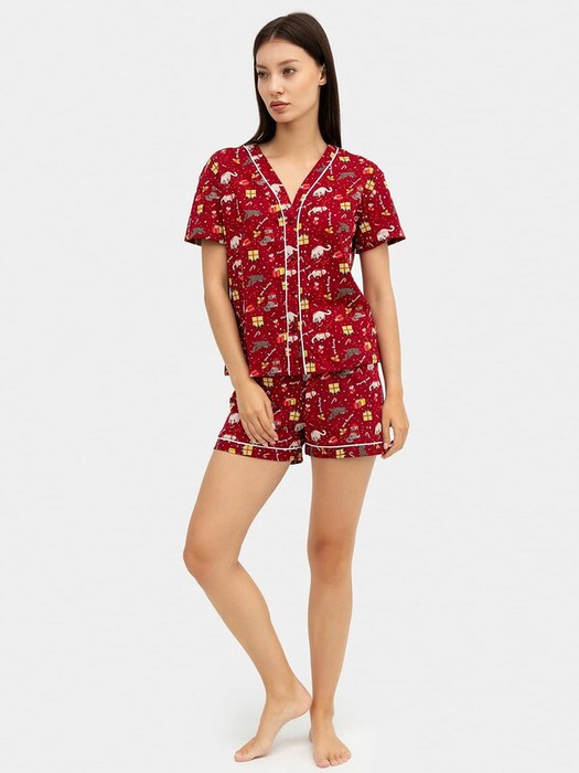 Совместные покупки Пермь Женская одежда Домашняя одежда — Mark Formelle КОМПЛЕКТ ЖЕНСКИЙ (ЖАКЕТ, ШОРТЫ) 592348 592348 котики на вишневом 1