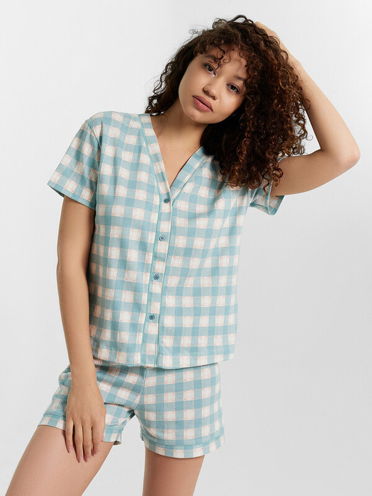 Красивая пижама женская из высококачественного хлопка актуального свободного силуэта. Рубашка прямая с короткими рукавами, застегивается на пуговицы. Дополняют ее стильные и свободные шорты длины мини, с резиновой тесьмой в поясе и атласной тесьмой, которая завязывается на бантик. Особенность модели – контрастные канты на рукавах, воротнике и передней части рубашки. В ней абсолютно не жарко, комфортная легкая слегка тянущаяся ткань не сковывает движений. Красивая и интересная модель на каждый день. В линейке много цветов и широкий размерный ряд. Такая пижама женская отлично подойдет для сна и домашних дел. Если вы в поиске нескучного комплекта, модель вас однозначно порадует. Выглядеть стильно и модно дома - это реально. Купить пижаму женскую недорого можно у нас на сайте и в магазинах Mark Formelle. Рекомендуем!