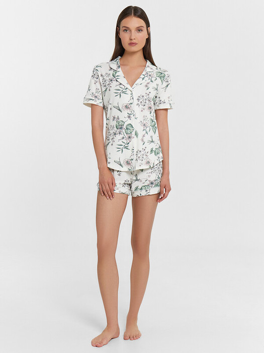 Совместные покупки Пермь Женская одежда Пижамы, халаты — Mark Formelle КОМПЛЕКТ ЖЕНСКИЙ (ЖАКЕТ, ШОРТЫ) 592478 592478 цветы на св.молочном