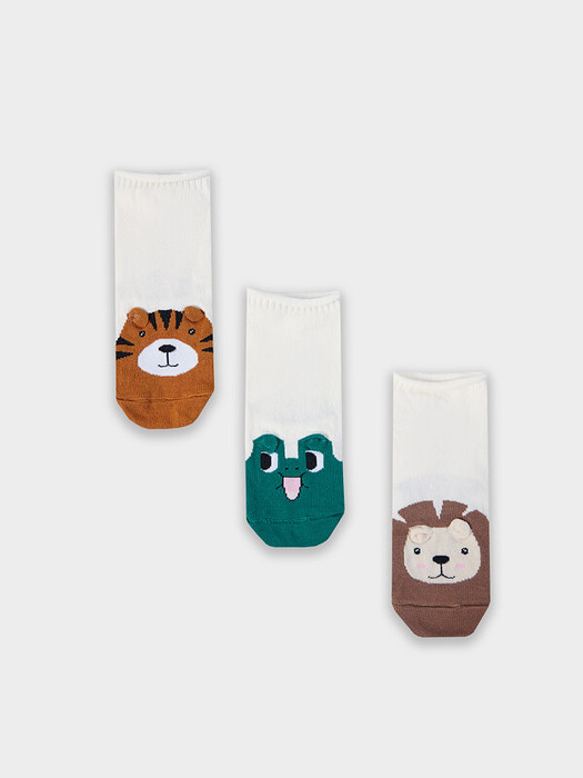 рис.2933  Мультипак  из трех пар детских гладких носков без борта, с рисунком в виде разных зверюшек и цветным мыском.