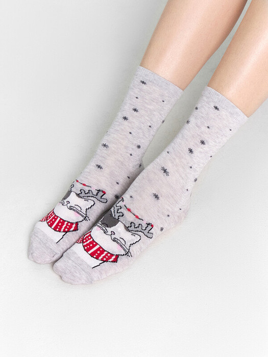 рис.3001  Детские классические носки с рисунком в виде котика с рожками.