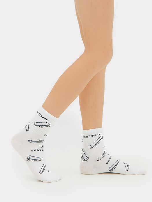 рис.2709 Детский носок с высоким плотным бортом и рисунком в виде скейтбордов.