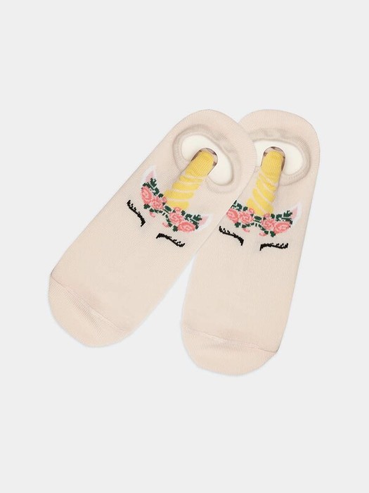 рис.1942 Детский носок гладкий суперкороткий с рисунком в виде единорога и 3-д рисунком.