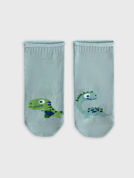 рис.2322  Детский гладкий носок без борта, с рисунком в виде динозавров.