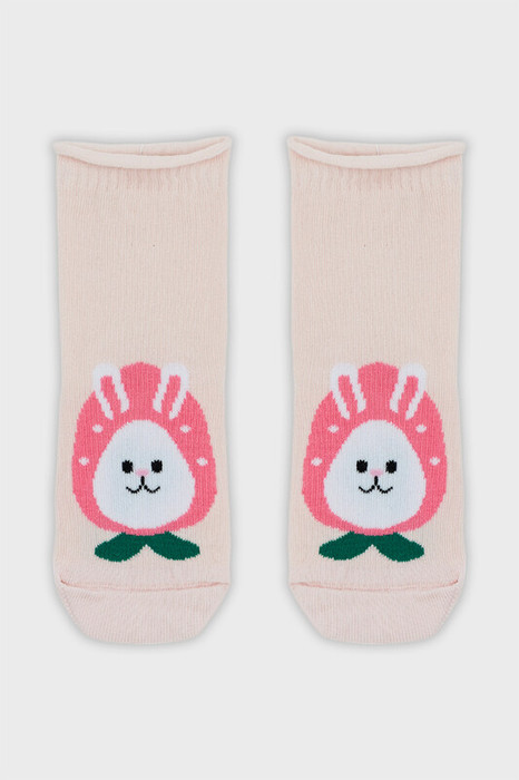 рис.3245  Детские классические носки без борта, с рисунком в виде зайчика и силиконом на стопе.