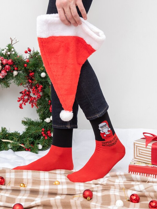 рис.1138 Классический гладкий мужской носок с рисунком в виде надписи Санты