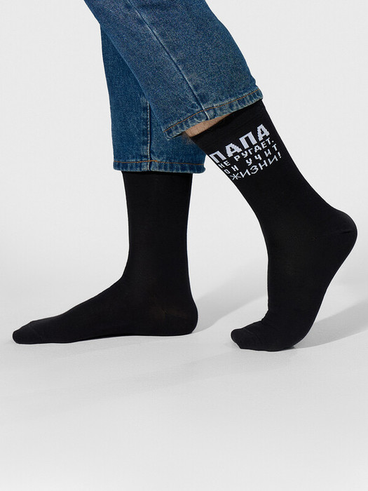 рис.2258   Мужской носок классический высокий с рисунком в виде надписи "Папа всегда прав!"