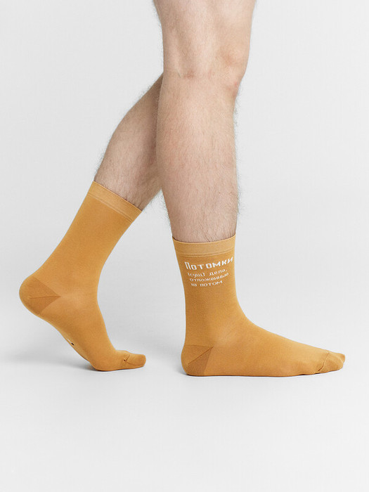 Мужской носок классический, высокий с рисунком в виде надписи "Потомки"