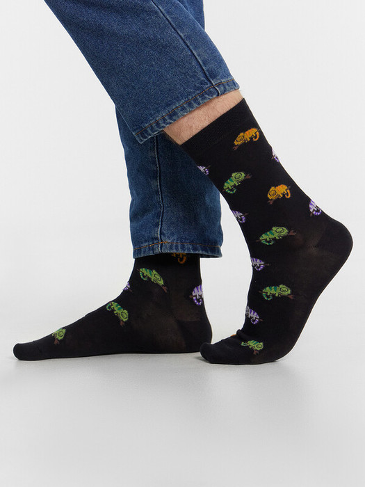 рис.2856 Мужской носок классический, высокий, с рисунком в виде хамелиона.