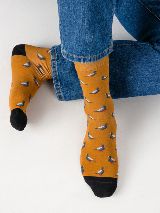 рис.2902 Мужской носок классический, высокий, с рисунком в виде голубей.