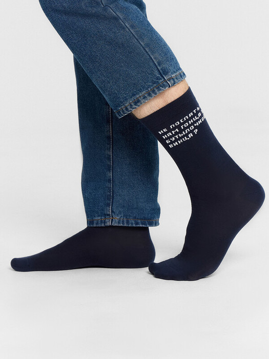 рис.3026 Мужской носок классический, высокий, с рисунком в виде надписи "Не послать ли.....".