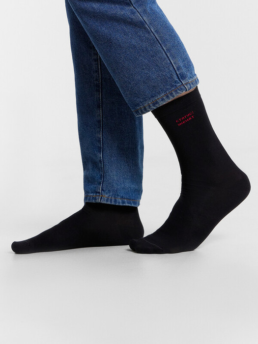 рис.3034 Мужской носок классический, высокий, с рисунком в виде надписи "СТАТУС ЖЕНАТ".