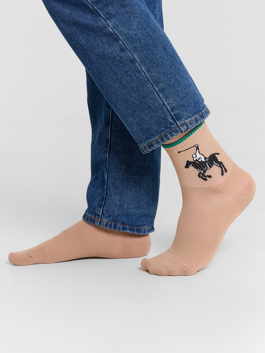 Рис.3107. Мужские носки, средней длины с резинкой на поголенке и рисунком в виде всадника на лошади и цветной полоской на бортике.