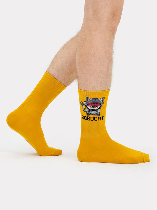 Носки мужские классические высокие с высоким плотным бортом и рисунком в виде забавной надписи "ROBOCAT" - нескучный вариант для ежедневной носки. Длинные носки мужские однотонные изготовлены из гребенного хлопка - пряжи высочайшего качества, мягкой, тонкой, но прочной. Натуральные волокна отлично пропускают воздух, позволяя коже дышать, и впитывают влагу, дарят ощущение комфорта в течение всего дня. Благодаря небольшому количеству эластана в составе, длинные носки хорошо облегают стопу и сохраняют форму даже после множества стирок. Мягкая эластичная резинка надежно удерживает носки на ноге, но не давит. Пятка и мысок дополнительно усилены, что гарантирует защиту от протирания и повышенную износостойкость - мужские носки с принтом прослужат долго. Купить высокие носки мужские недорого можно у нас на сайте или в магазине Mark Formelle. Отличный выбор на каждый день. Рекомендуем!
